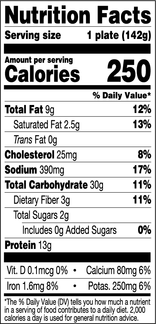 Salt, Yellow Corn Flour, Yeast, Onion Powder, Corn Starch, Garlic Powder, Chia Seeds*, Molasses, Sea Salt, Cream Of Tartar, Celery Seed, Baking Soda, Millet Flour, White Pepper), Broccoli Bites (Broccoli, Water, Potato, Millet, High-Oleic Sunflower Oil, Nutritional Yeast, Rice Flour, Potato Starch, Salt, Garlic Powder, Black Pepper).